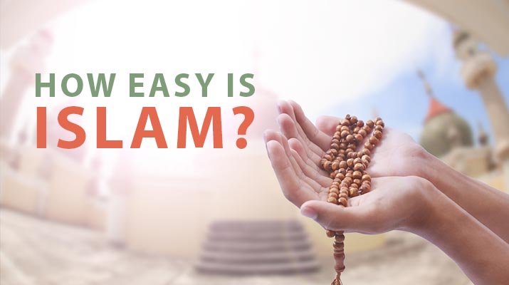 - Deen here can be understood as both iman and Islam together. Iman (faith) is ‘easy’ in the sense that it is straightforward without any complexities. This is demonstrated in the hadith where the Prophet tests the slave girl to see whether or not she is a Muslim. He was satisfied by her action of simply pointing to the sky to indicate that Allah is above his creation and by her attesting to the fact that he was the Messenger of Allah.As for the ease in Islam, the practice, this is demonstrated by the famous hadith where a person asks the Prophet about the obligations of Islam and the Prophet tells him about the five obligatory prayers, the obligatory fast of Ramadan and the obligatory zakah (charity). Each time the person asked if there was anything more than the obligatory prayer, fasting and zakah the Prophet replied that there wasn’t unless he wanted to do something extra voluntarily. While the person was leaving he said to himself: by Allah I will not increase nor decrease from that. The Prophet said he has succeeded if he is truthful.