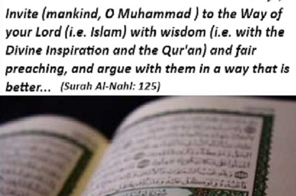 Invite to the way of your Lord with wisdom (hikmah) and good instruction (mawidhah hasanah), and argue with them in a way that is best. Indeed, your Lord is most knowing of who has strayed from His way, and He is most knowing of who is (rightly) guided. (An-Nahl 16:125)