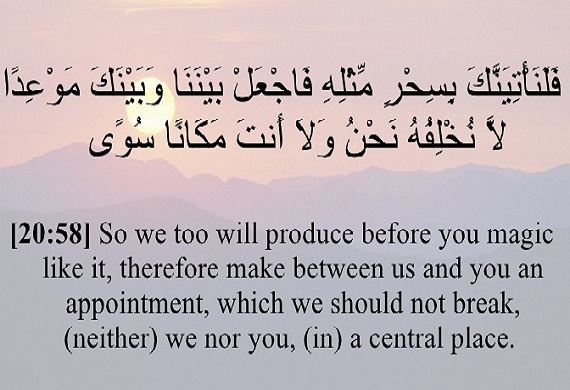The Qur’an graphically describes the entire environment and debate in such a manner that we can almost see and hear it. Fir`awn thought that Moses (peace be upon him) would lose his temper and say: “Am I mad? Then call a physician and get me examined by an expert.”