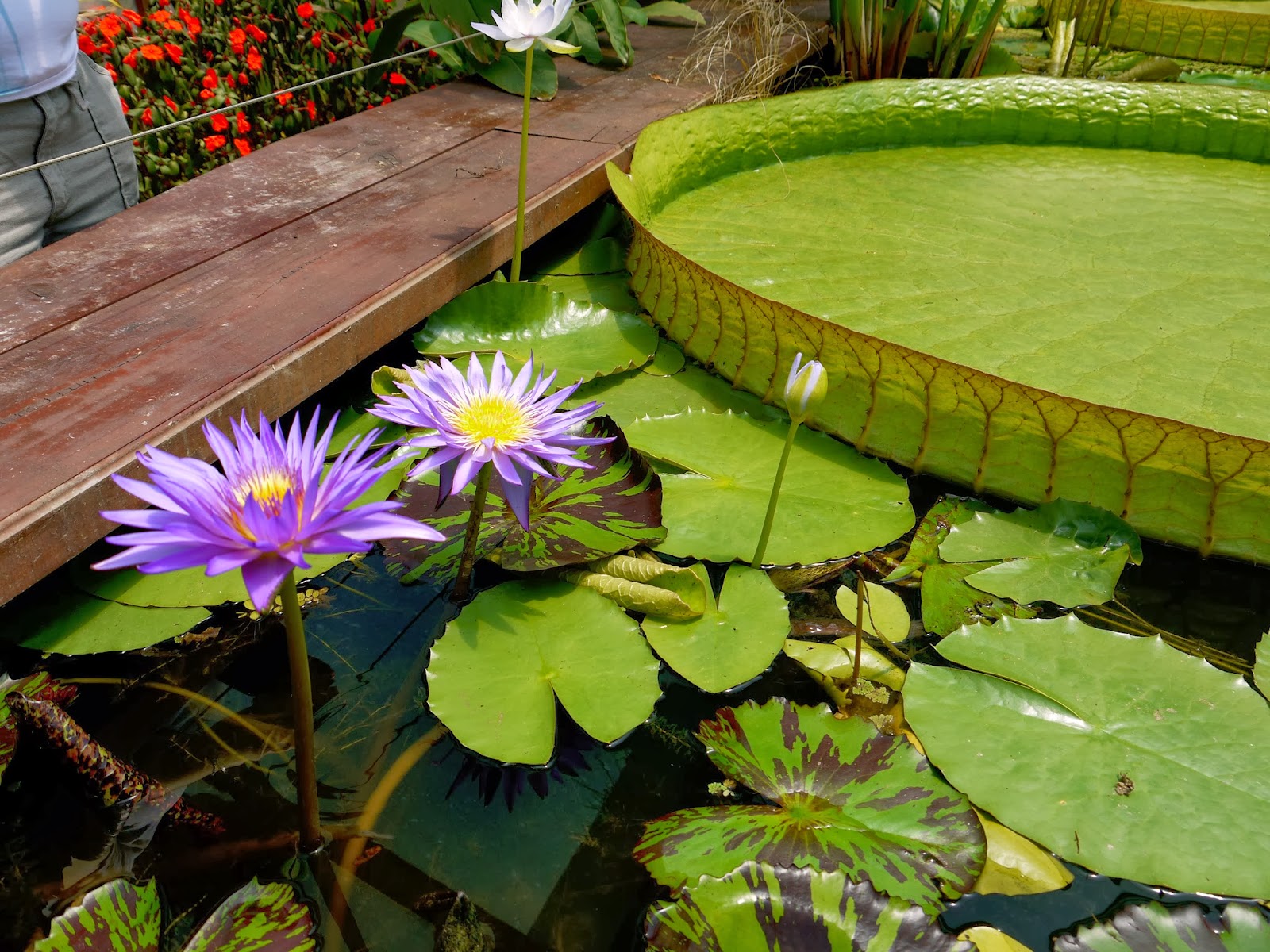 The amazing life struggle of water lilies continues well after they reach light and oxygen on the water surface, where they curl the brims of their huge leaves upward to prevent them from sinking.